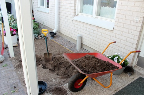 You might remember that I removed some soil from the front yard and moved it to the back yard to the raised beds. I did not need that soil in the front yard because I planned to make a zen garden inspired dry landscape garden there. The landscaping has been a long process since I first had to build the raised beds, create an area for them and move the soil. All my neighbours are quite finished with their front yards already, for me it's taken a bit longer.